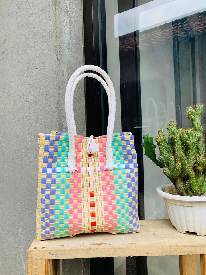 กระเป๋าผ้าทอผู้หญิงทำมือความจุมากกระเป๋าถือแฟชั่นพรีเมี่ยมแบบนุ่มอเนกประสงค์รีไซเคิลพลาสติกพรีเมียมรีไซเคิล