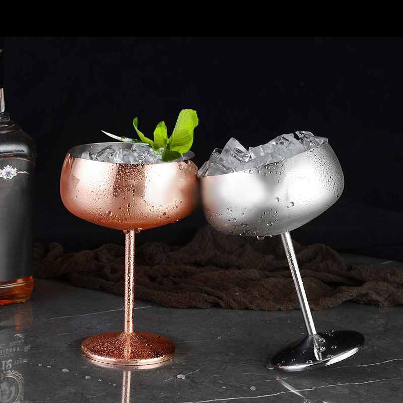ถ้วยไวน์แดงแก้วค็อกเทลแบบชั้นเดียวทำจากสเตนเลสทนทานต่อการตกหล่นแก้วไวน์ชุบทองแดงความจุสูง