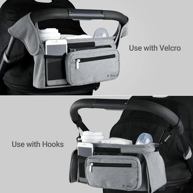 กระเป๋าจัดระเบียบรถเข็นเด็กความจุขนาดใหญ่มีหลายช่องปรับสายรัดขวดพื้นที่อุปกรณ์ผ้าอ้อม