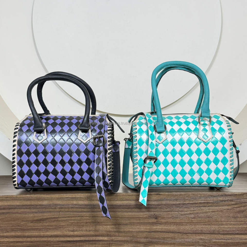 Product name:Hand Tooled Checkered Leather Duffle Bags