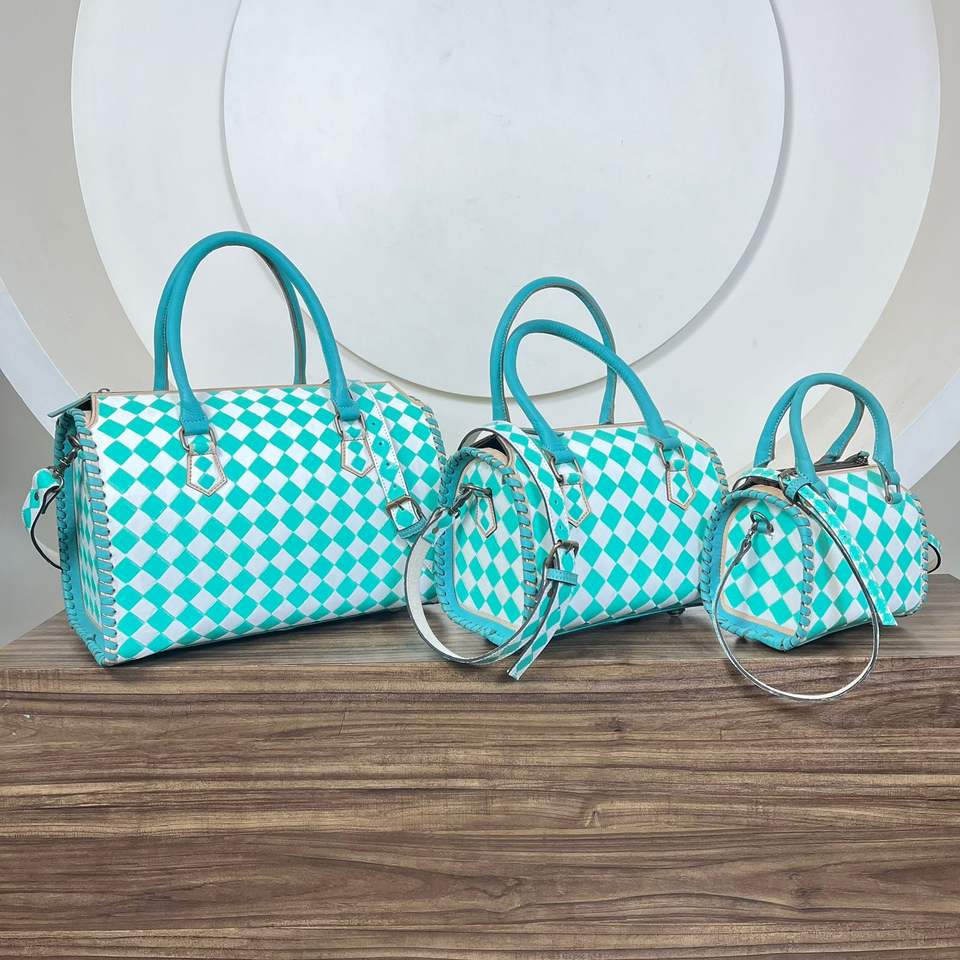 Product name:Hand Tooled Checkered Leather Duffle Bags
