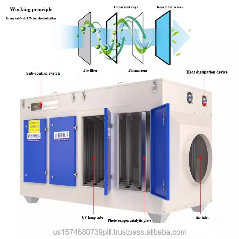 เครื่องฟอกอากาศไอเสียอุปกรณ์ดับกลิ่นเครื่องฟอกก๊าซไอเสีย