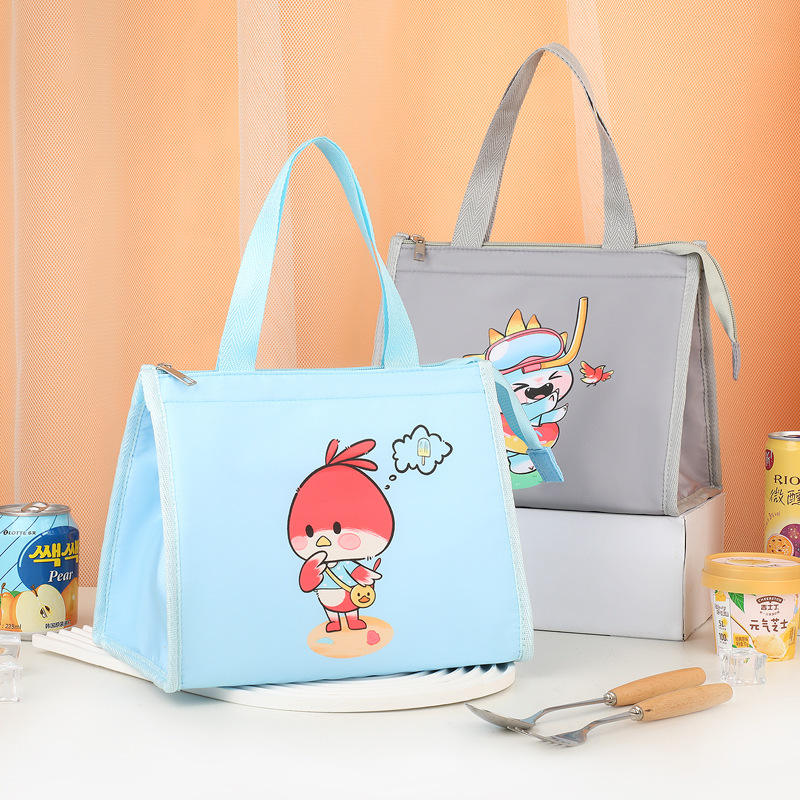กระเป๋าใส่อาหารกลางวันของนักเรียนลายการ์ตูนทรงสามเหลี่ยมขนาดใหญ่ผ้าอ๊อกซ์ฟอร์ดสำหรับเด็กพร้อมกล่องอาหารกลางวันอลูมิเนียมฟอยล์หนา
