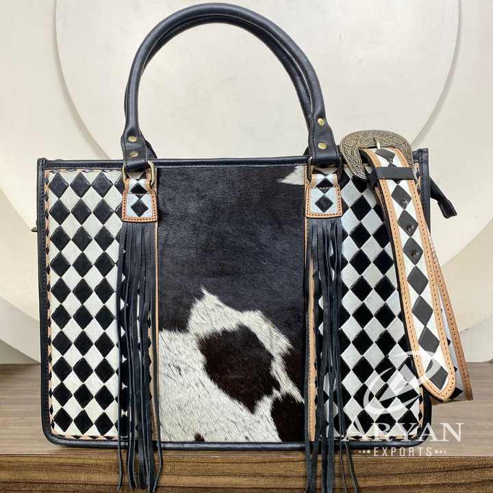 Product Name:Hand Tooled Checkered Leather Tote Bags