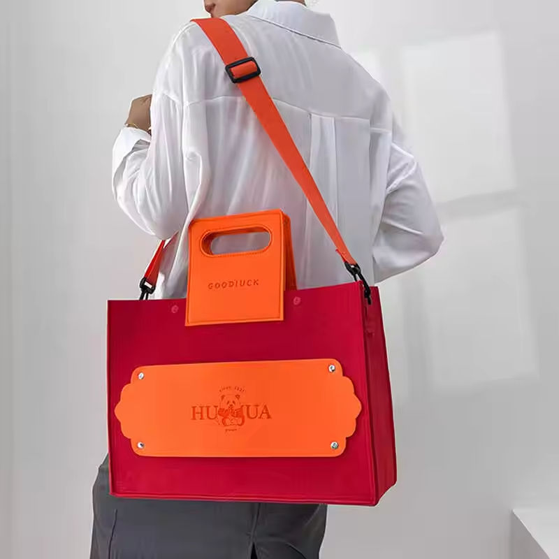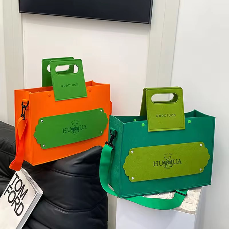 กระเป๋าผ้าสักหลาดมีซิปขนาดใหญ่กระเป๋าถือลายตัวอักษรแฟชั่นพร้อมพิมพ์โลโก้รหัสสี