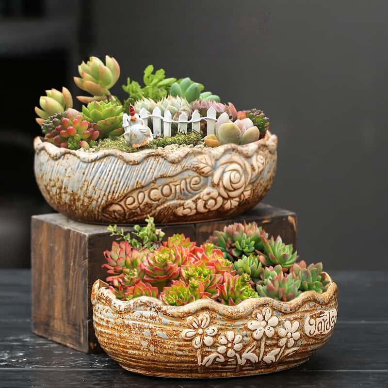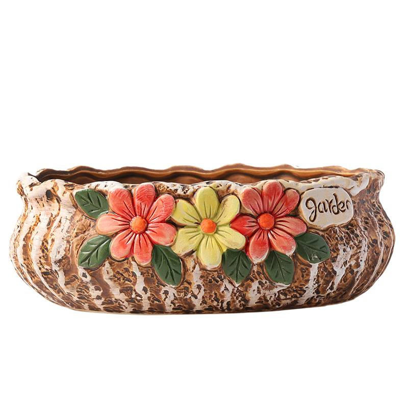 กระถางเซรามิกขนาดใหญ่สำหรับปลูกไม้อวบน้ำ ดีไซน์ร่วมสมัย เป็นมิตรกับสิ่งแวดล้อม ทำจากดินเผาหยาบ มีรูระบายน้ำ ดีไซน์สร้างสรรค์ เรียบง่าย ขนาดเส้นผ่านศูนย์กลางใหญ่