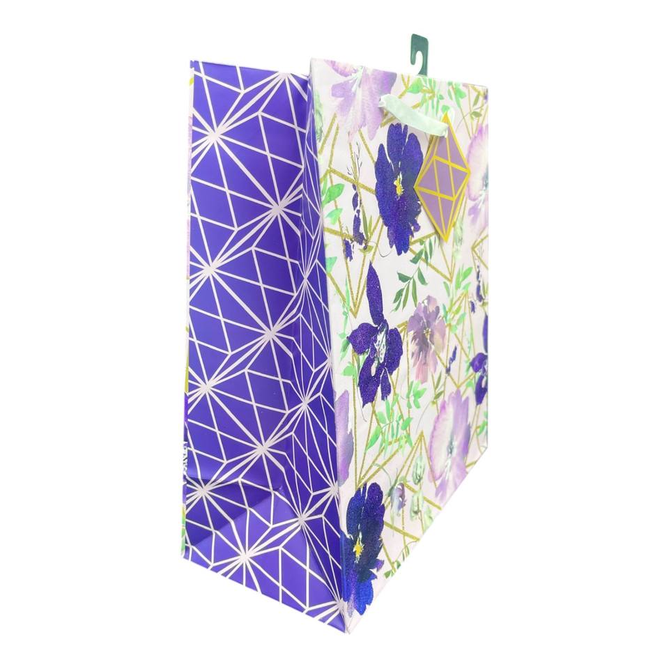 ถุงของขวัญกระดาษเคลือบลายดอกไม้แนวตั้งขนาดใหญ่คลาสสิกถุงหูหิ้วถุงฟอยล์แวววาวสำหรับตกแต่งเป็นมิตรกับสิ่งแวดล้อม