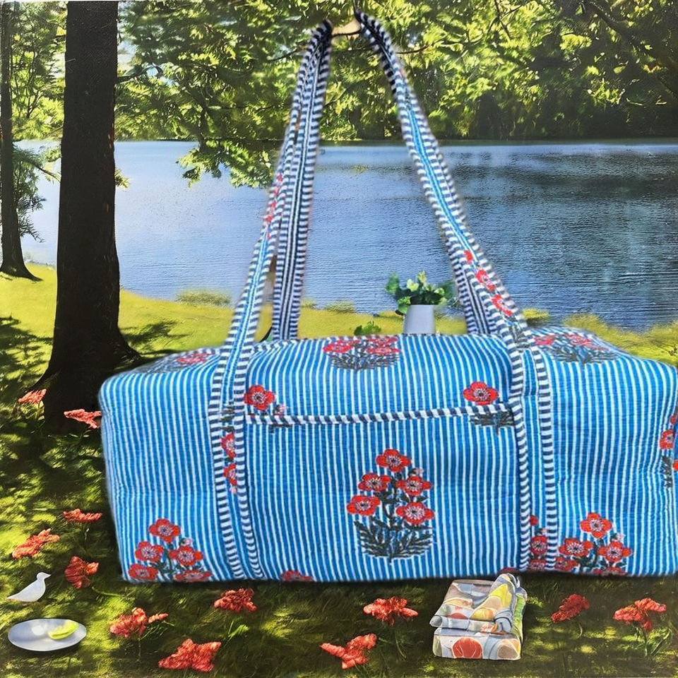 กระเป๋าเดินทางแบบดัฟเฟิลขนาดใหญ่ หรูหรา ทนทาน น้ำหนักเบา ผ้าฝ้ายลายควิลท์ สไตล์โบโฮ สำหรับวันหยุดสุดสัปดาห์ สะพายไหล่ มีซิป ลายดอกไม้ สายสะพายสองเส้น