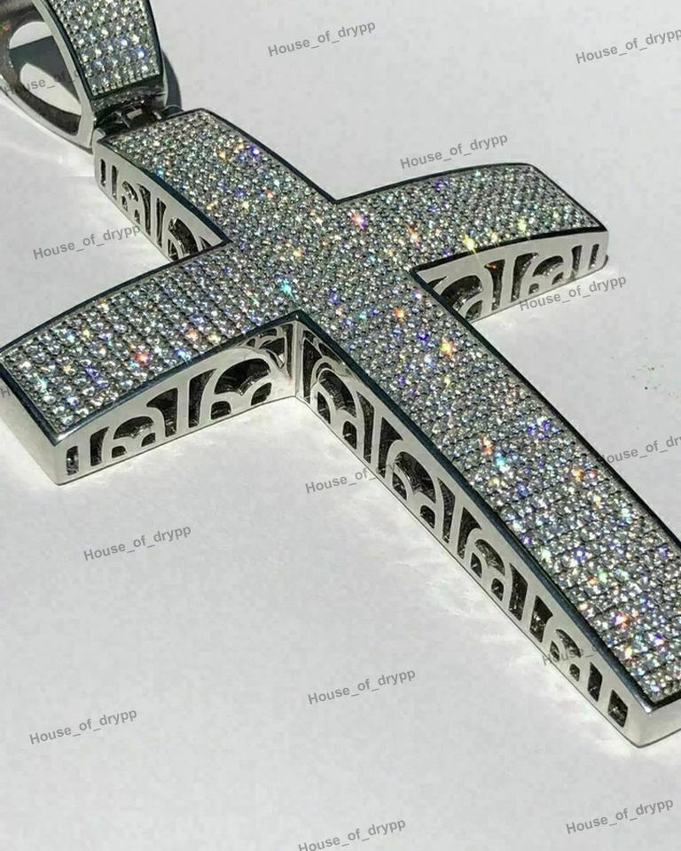 จี้กางเขนขนาดใหญ่ เงินแท้ 925 ประดับเพชรโมอิสซาไนต์เต็มตัว ดีไซน์เจียระไนด้านข้างสุดเก๋ สไตล์ฮิปฮอปสุดหรู