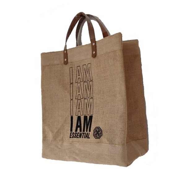 jute shopping bag with leather handleหมายเลขรุ่น