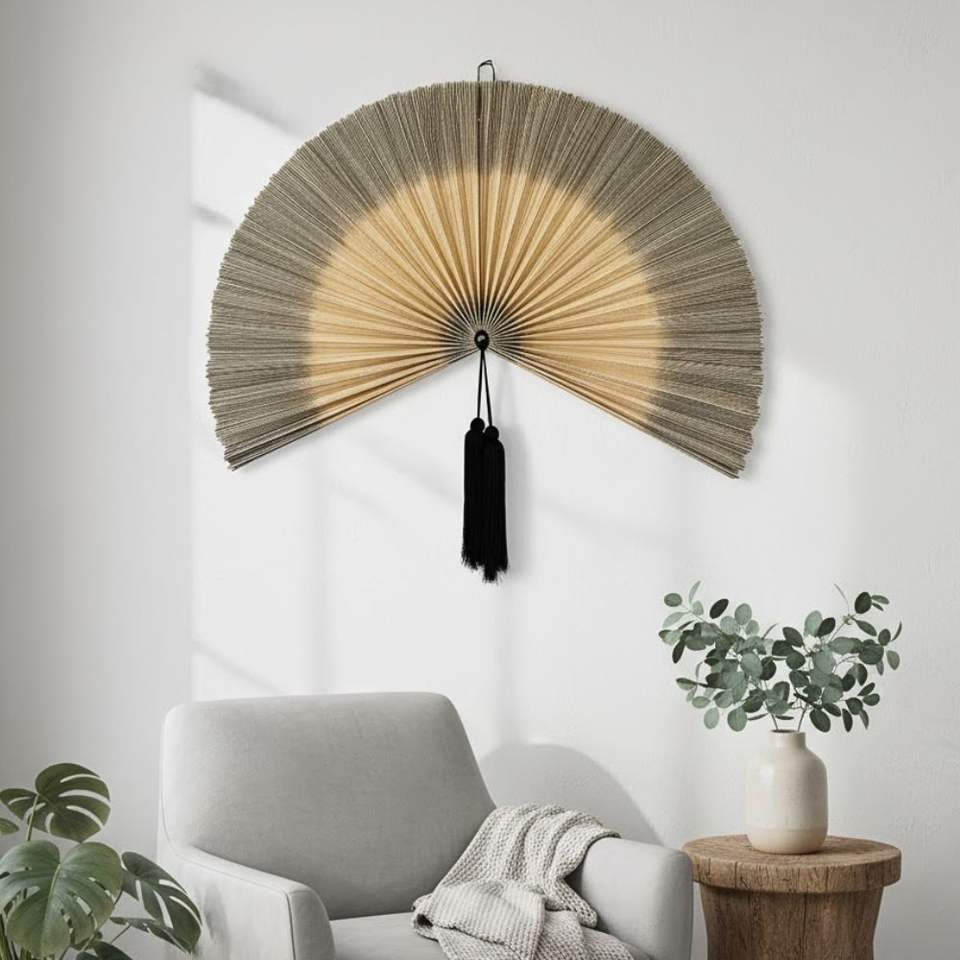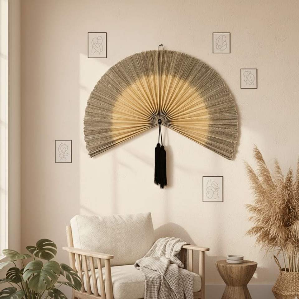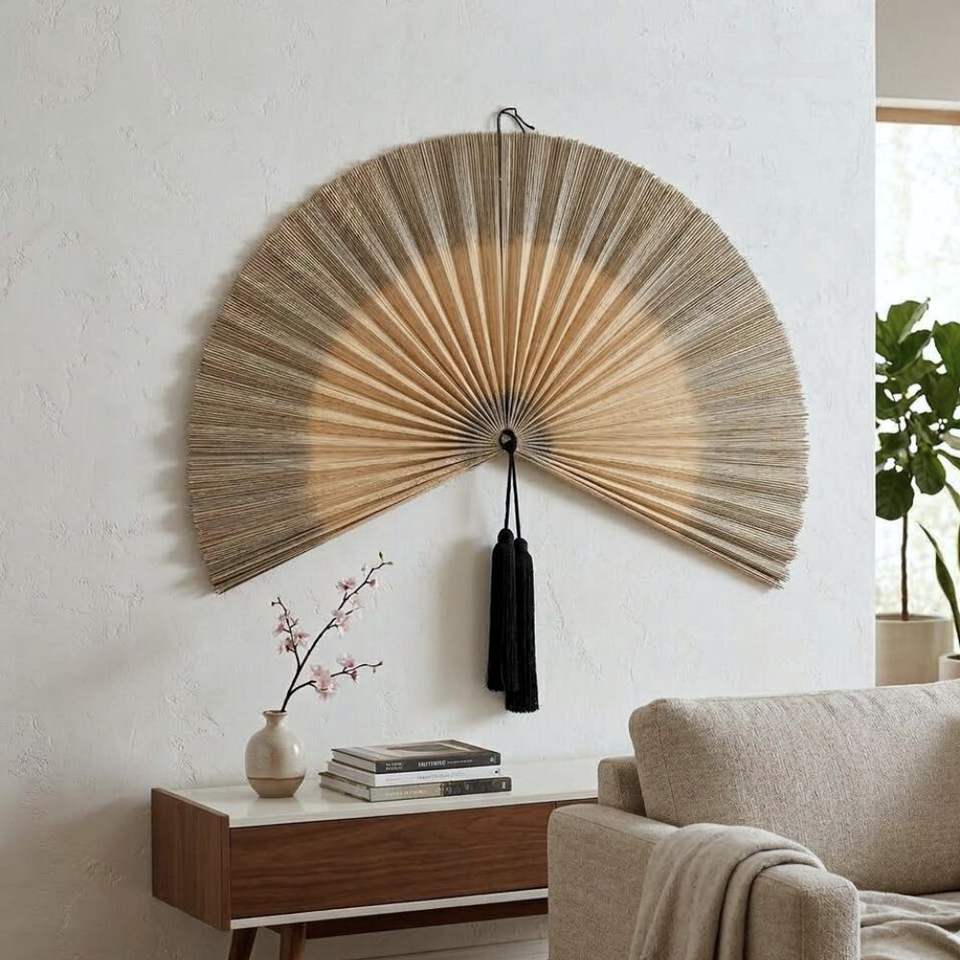 พัดไม้ไผ่ตกแต่งขนาดใหญ่สำหรับติดผนัง – ของตกแต่งสไตล์โบโฮวินเทจธรรมชาติสำหรับห้องนั่งเล่น ห้องนอน