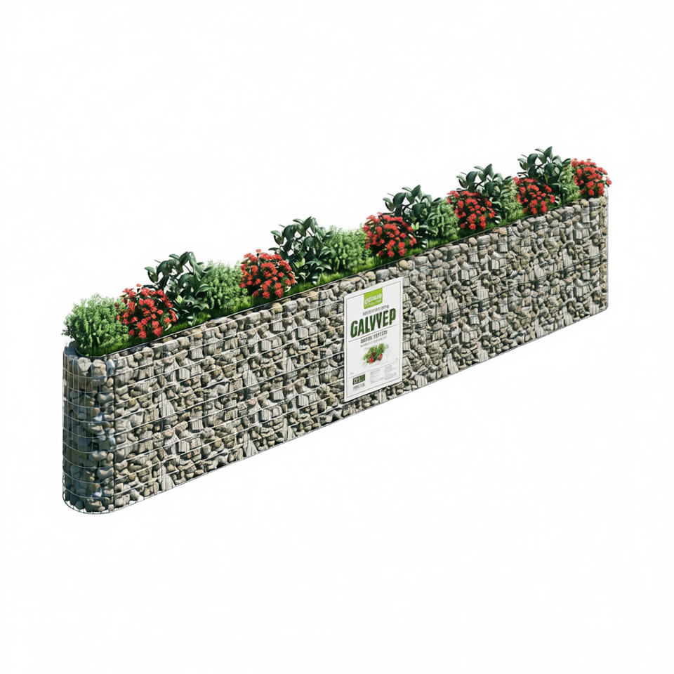 GALVYEP Gabion Raised Bed Silver Galvanized Iron Garden Planter Rustic Style Flower Pot