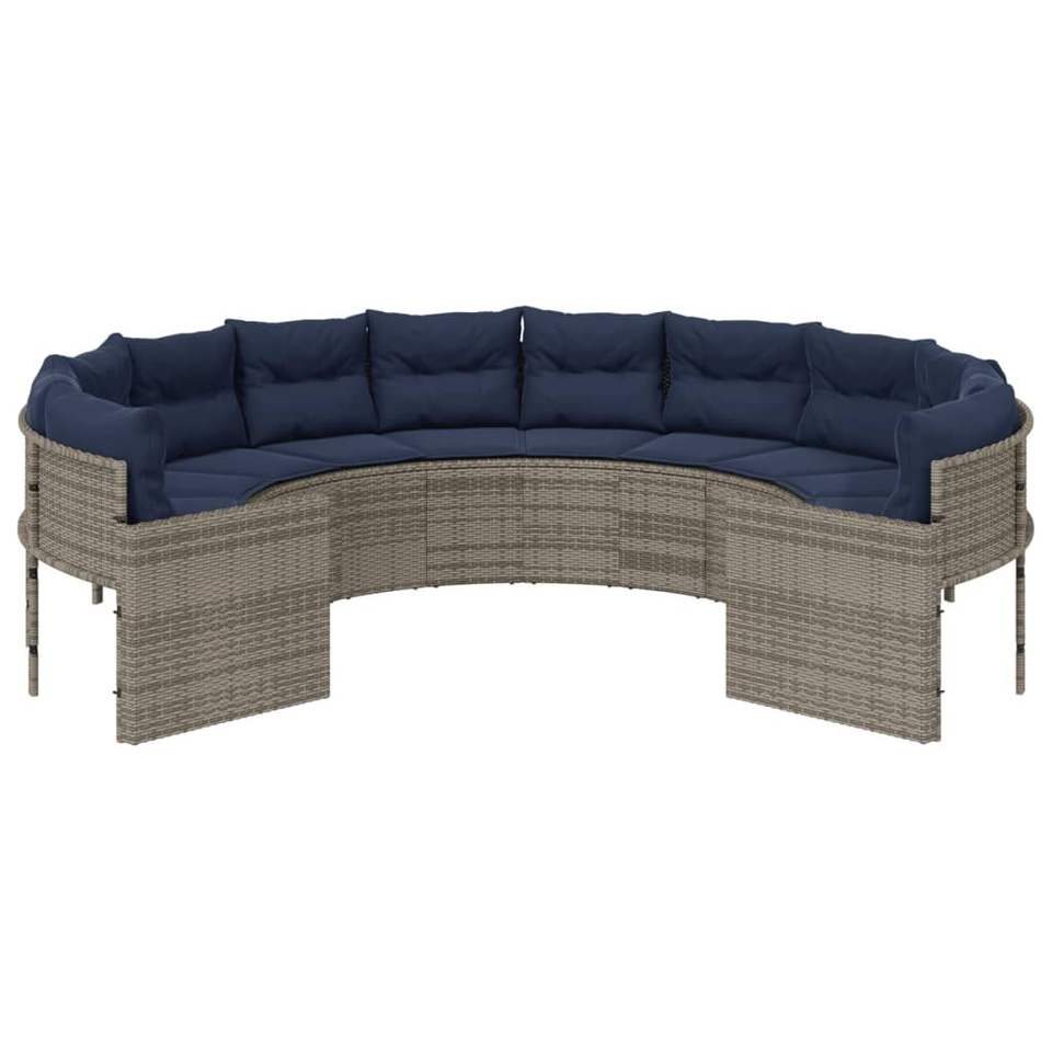 โซฟาสนามขนาดใหญ่ ทนทาน สำหรับกลางแจ้ง สีเทา ทำจากหวายโพลี รูปทรงกลม เฟอร์นิเจอร์สำหรับสวน