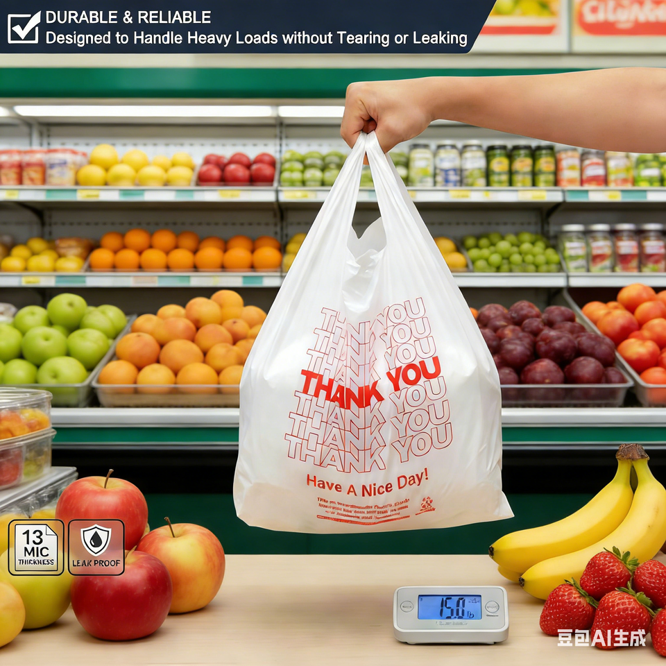 ถุงช้อปปิ้งกันน้ำ PE ขนาดใหญ่ ทนทาน สำหรับการซื้อของใช้ในครัวเรือนและอาหารแบบซื้อกลับบ้าน