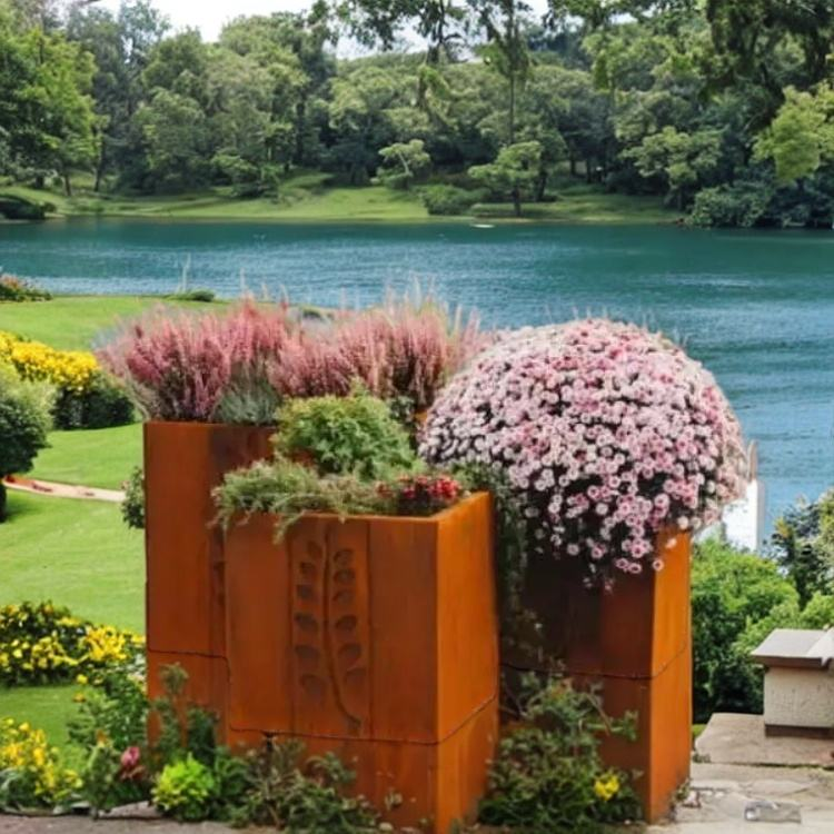 กระถางปลูกต้นไม้เหล็กคอร์เทนขนาดใหญ่ เป็นมิตรกับสิ่งแวดล้อม ทนทาน ใช้ได้ทั้งภายนอก/ภายในอาคาร พร้อมขาตั้งแขวนสำหรับปลูกต้นไม้ ใช้ในบ้านและสวน
