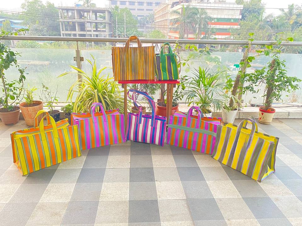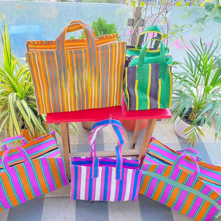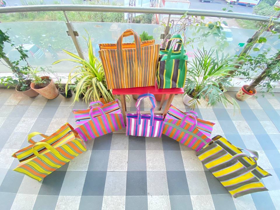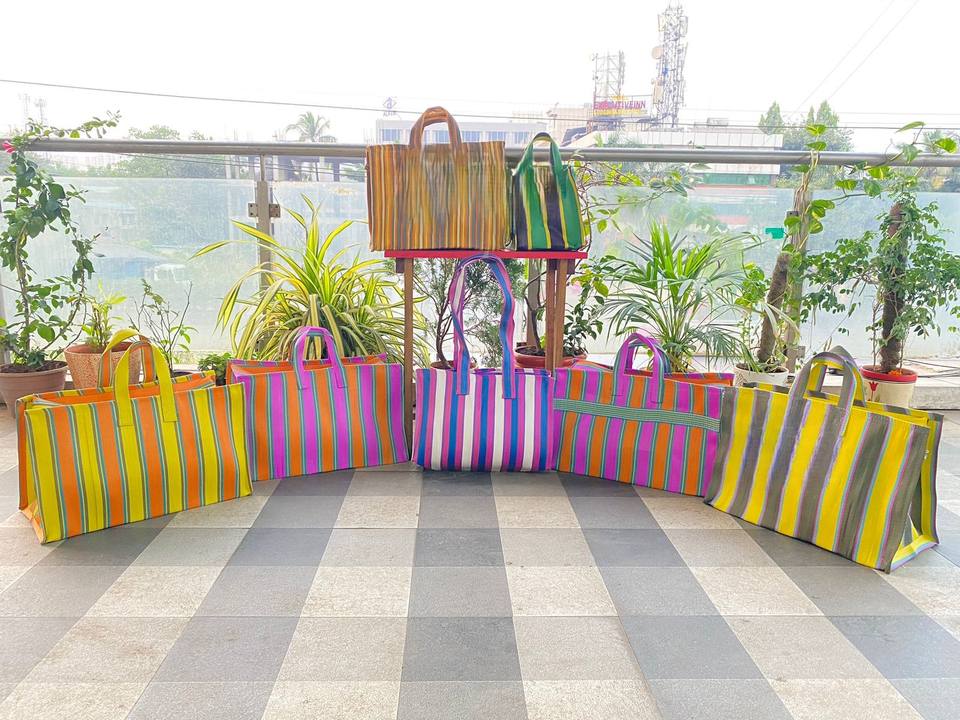 ถุงซิปไนลอนรีไซเคิลเป็นมิตรต่อสิ่งแวดล้อมขนาดใหญ่ถุงผ้าพิมพ์แบบออฟเซ็ตพิมพ์แบบยั่งยืนกระเป๋าทอ PP รุ่นสำหรับอินเดีย