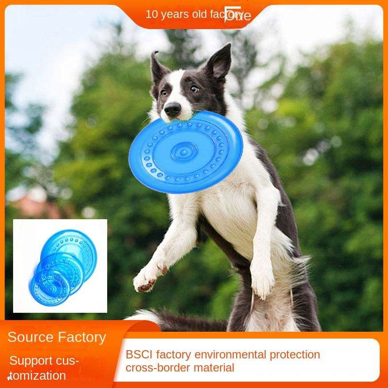จานร่อนยาง TPR ขนาดใหญ่ เป็นมิตรกับสิ่งแวดล้อม ทนทานต่อการกัด ง่ายต่อการขว้าง ดีไซน์ UFO สีทอง ของเล่นสัตว์เลี้ยงแบบเคลื่อนไหวได้