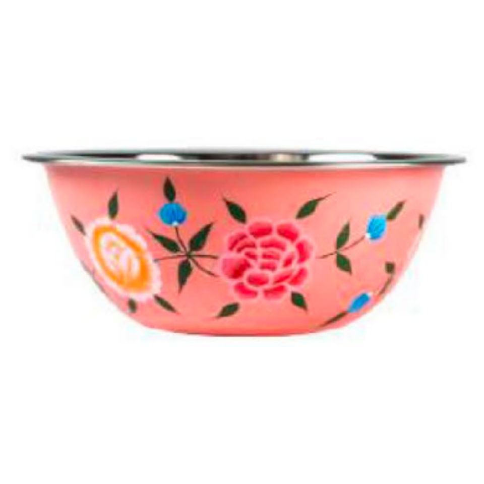 ชามสแตนเลสสตีลเคลือบเคลือบขนาดใหญ่สำหรับเสิร์ฟชามดีไซน์เรขาคณิตลายดอกไม้ทนทานอุปกรณ์สำหรับห้องครัว