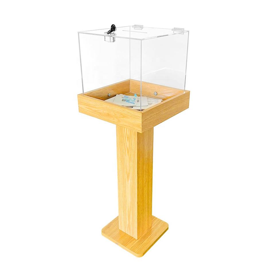 กล่องพลาสติกใส่บัตรลงคะแนนบริจาคเพื่อการกุศลแบบโปร่งใสที่ตั้งทำจากไม้ขนาดใหญ่กล่องข้อเสนอแนะสำหรับการเลือกตั้ง