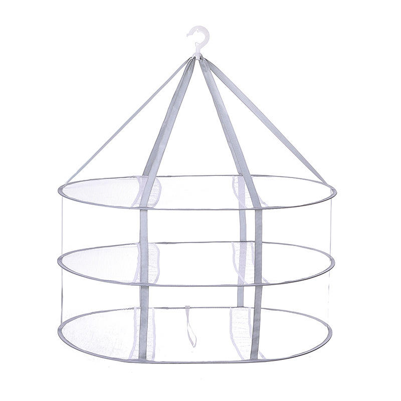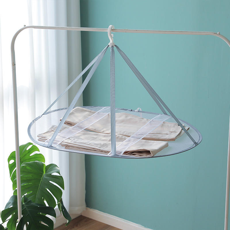 ตะกร้าตากผ้าพับได้ขนาดใหญ่ ชั้นวางตากผ้าสแตนเลสสองชั้น พร้อมถาดตาข่าย สำหรับใช้ภายในบ้าน
