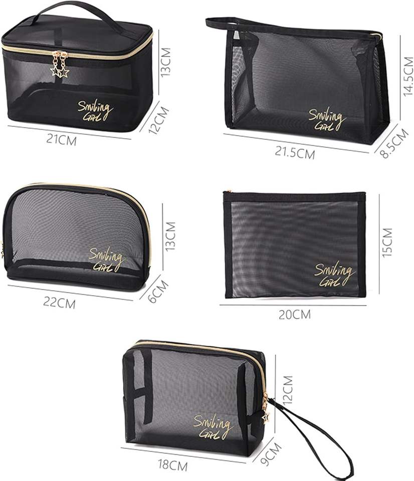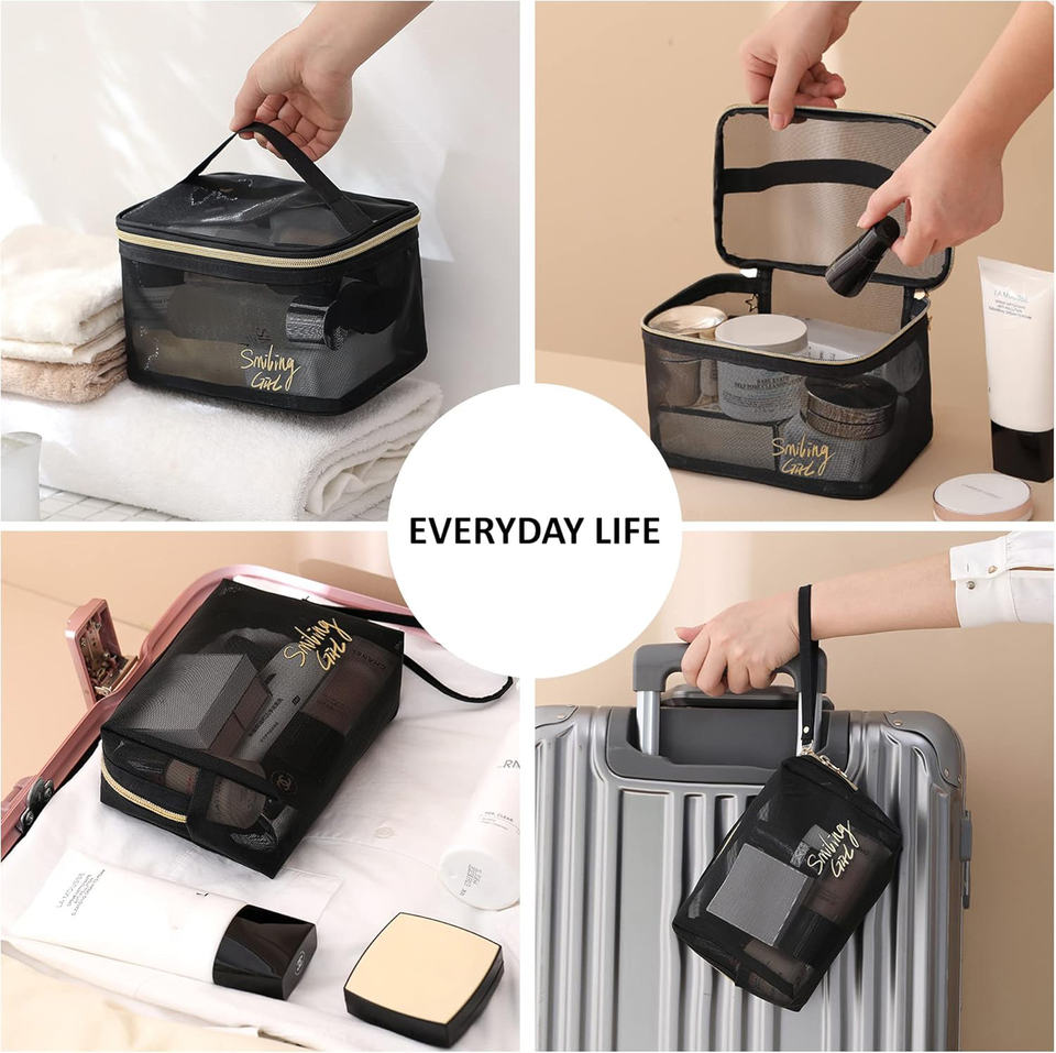Large Foldable Mesh Cosmetic Bag with Zipper Pouch Portable Travel Makeup Bag for Home & Office Use