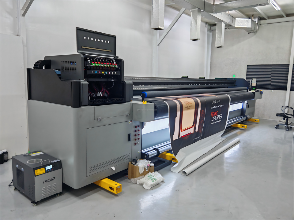 เครื่องพิมพ์ยูวีแบบไฮบริดขนาดใหญ่ 5300 ซม. สำหรับงานพิมพ์แบบม้วนและแบบราบ ใช้หมึกยูวี สำหรับพิมพ์บนผ้าไหม กล่องไฟ งานพิมพ์ภายในและภายนอกอาคาร