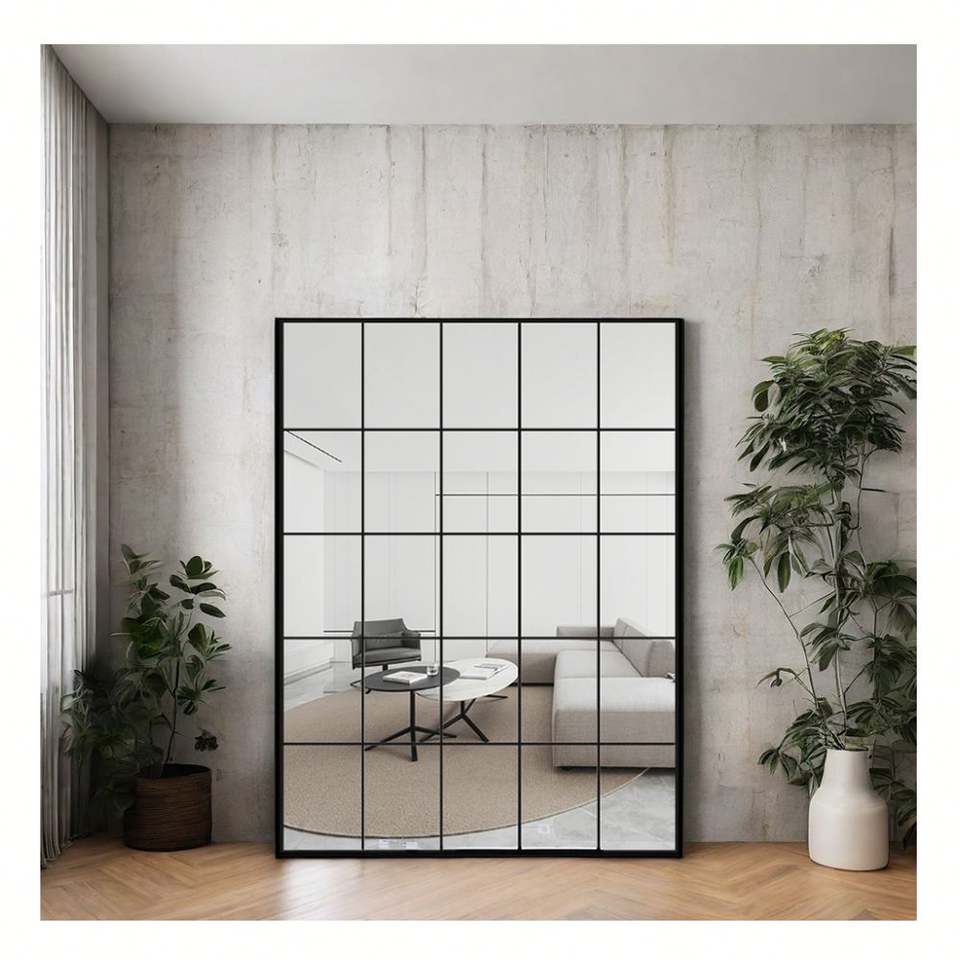 ชื่อสินค้า:กระจกติดผนังลายตารางหน้าต่างกรอบเหล็ก