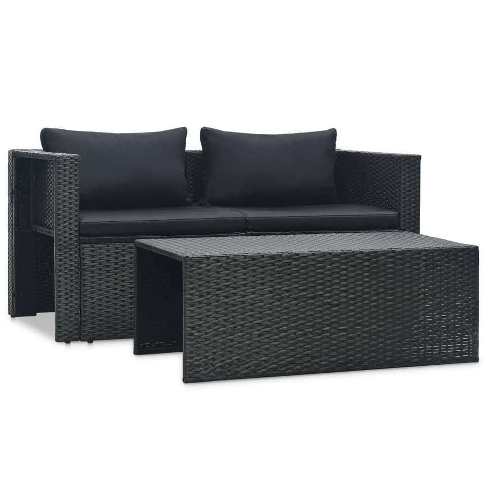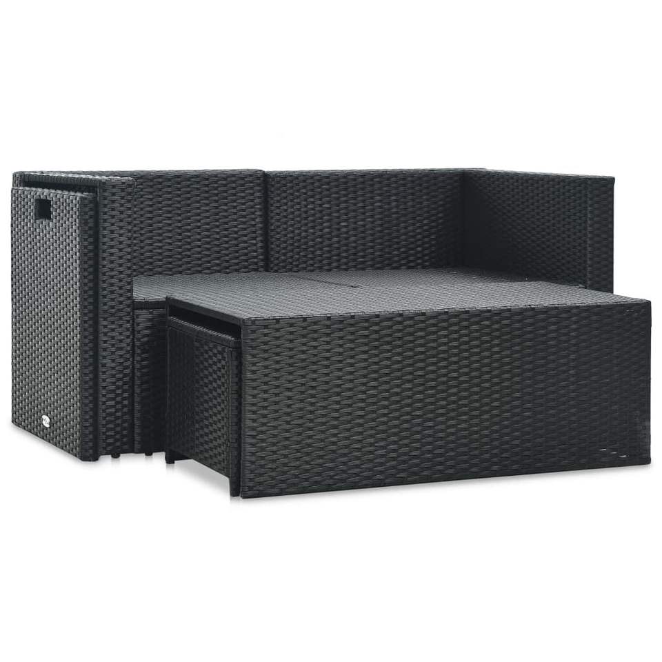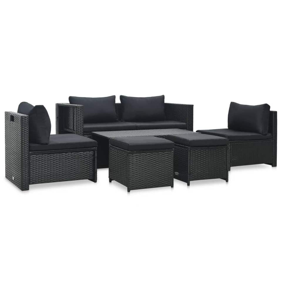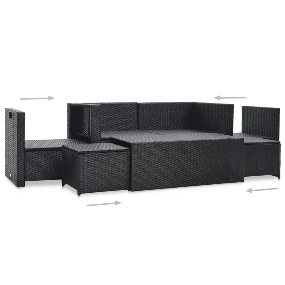 ชุดเฟอร์นิเจอร์สวนขนาดใหญ่ สีดำ ทำจากหวาย PE (โพลีเอทิลีน) พร้อมโครงเหล็กเคลือบสีฝุ่น