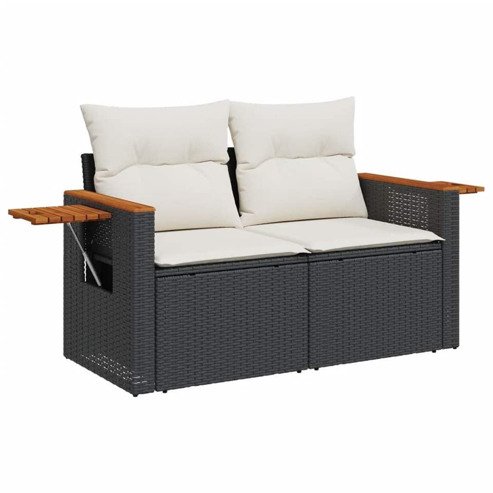 ชุดสวนขนาดใหญ่พร้อมหวาย PE สีครีมขาวและเหล็กเคลือบสีดำ ชุดโซฟาสีดำและสีครีมขาว