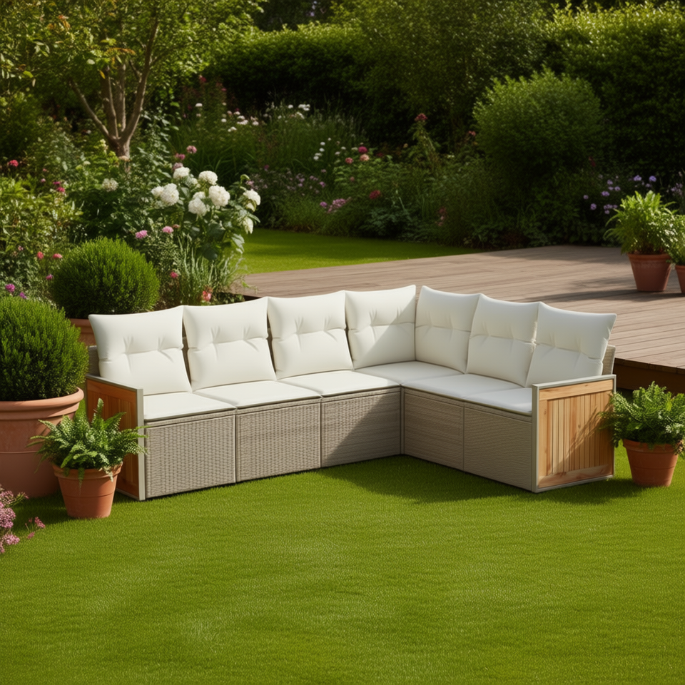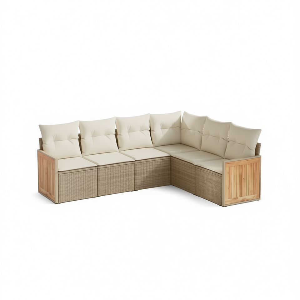 ชุดโซฟาหวายสีเบจสำหรับสวน พร้อมเบาะโฟมความหนาแน่นสูง เฟอร์นิเจอร์กลางแจ้ง ดีไซน์ร่วมสมัย
