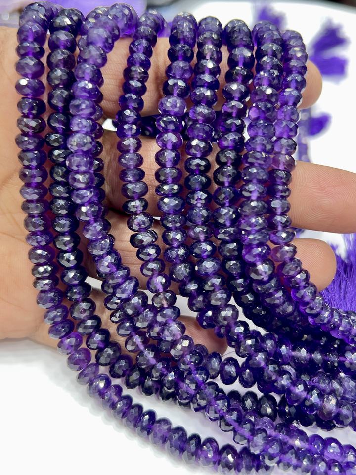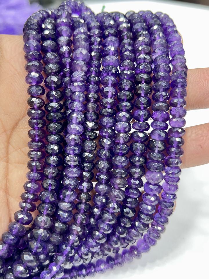 ลูกปัดพลอยขนาดใหญ่ เกรด AAA ธรรมชาติ สีม่วงอเมทิสต์ ควอตซ์ พลอยเจียระไนทรงรอนเดลล์ ขนาด 8 มม. ความยาว 8 นิ้ว