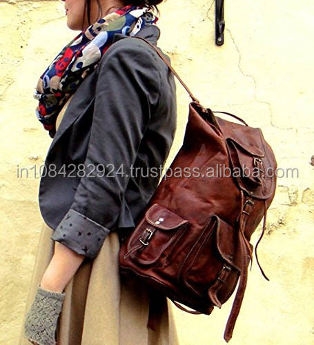 กระเป๋าเป้สะพายหลังหนังแท้ขนาดใหญ่แบบย้อนยุคสำหรับนักเรียนชายและหญิงกระเป๋าปิกนิก
