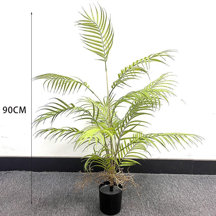 ต้นปาล์มบอนไซสีเขียวขนาดใหญ่หญ้าเทียมพร้อมวัสดุผ้าไหมกระถางพลาสติกทนทานใช้ในร่ม/กลางแจ้งสำนักงานบ้านตกแต่งอีสเตอร์