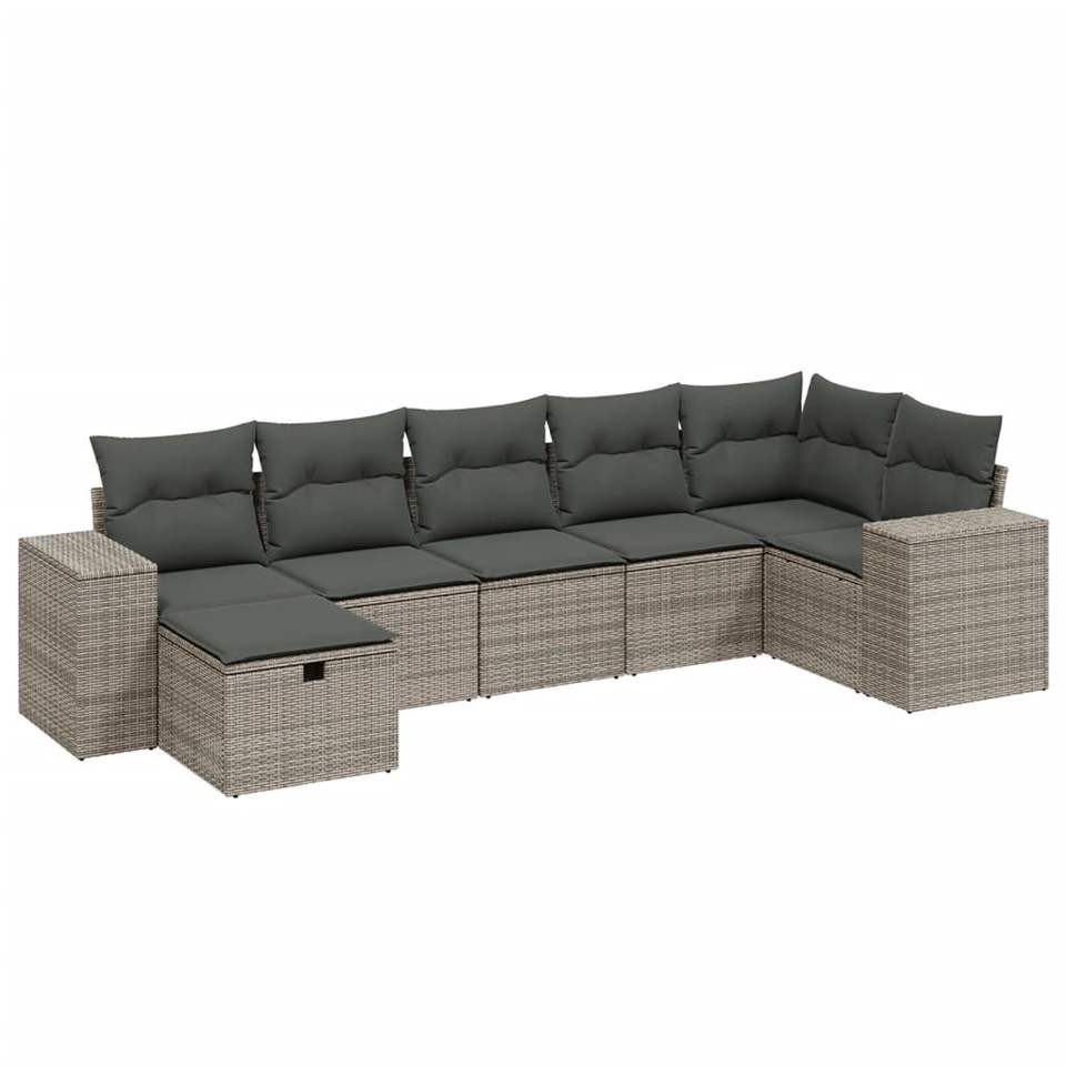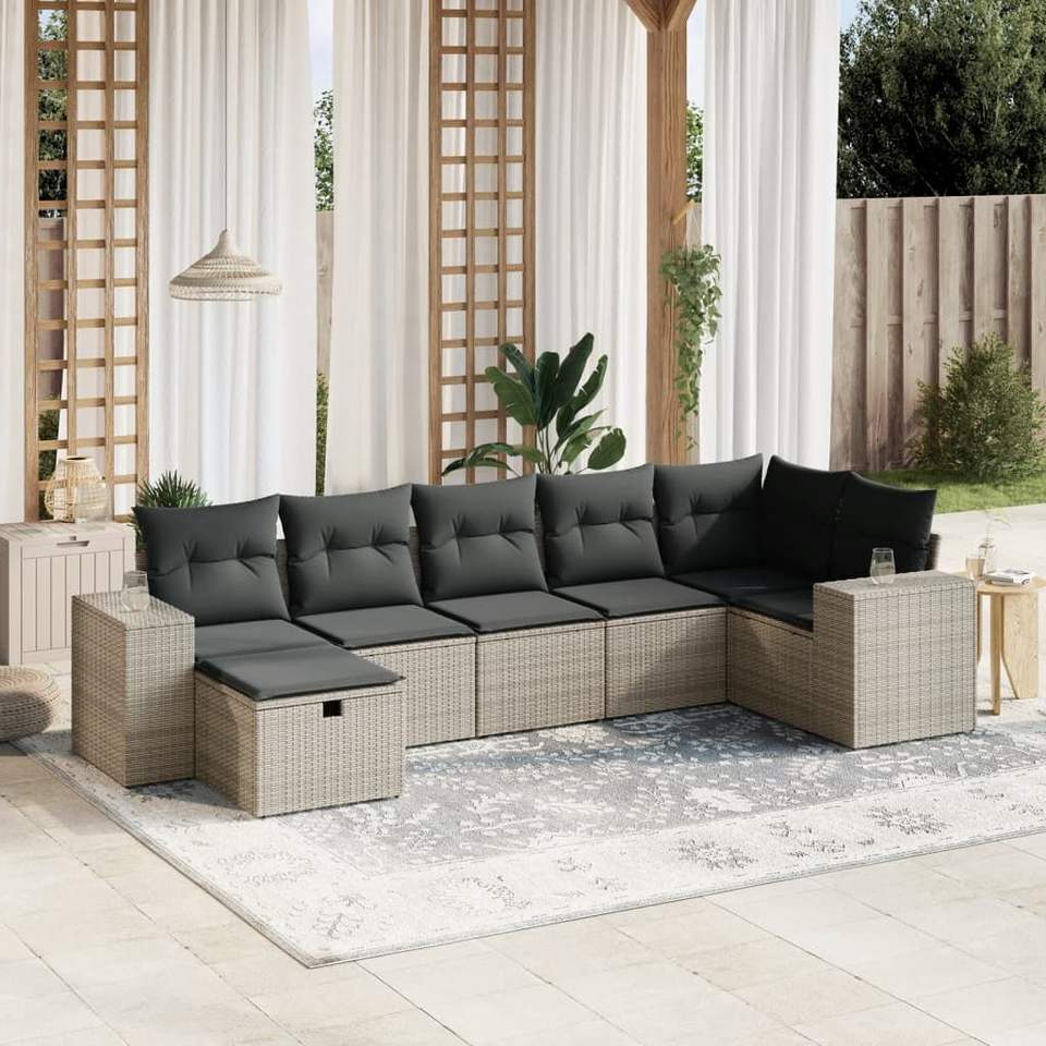 ชุดโซฟาหวายโพลีสีเทาขนาดใหญ่สำหรับสวนพร้อมที่คลุมเหล็กแบบถอดได้