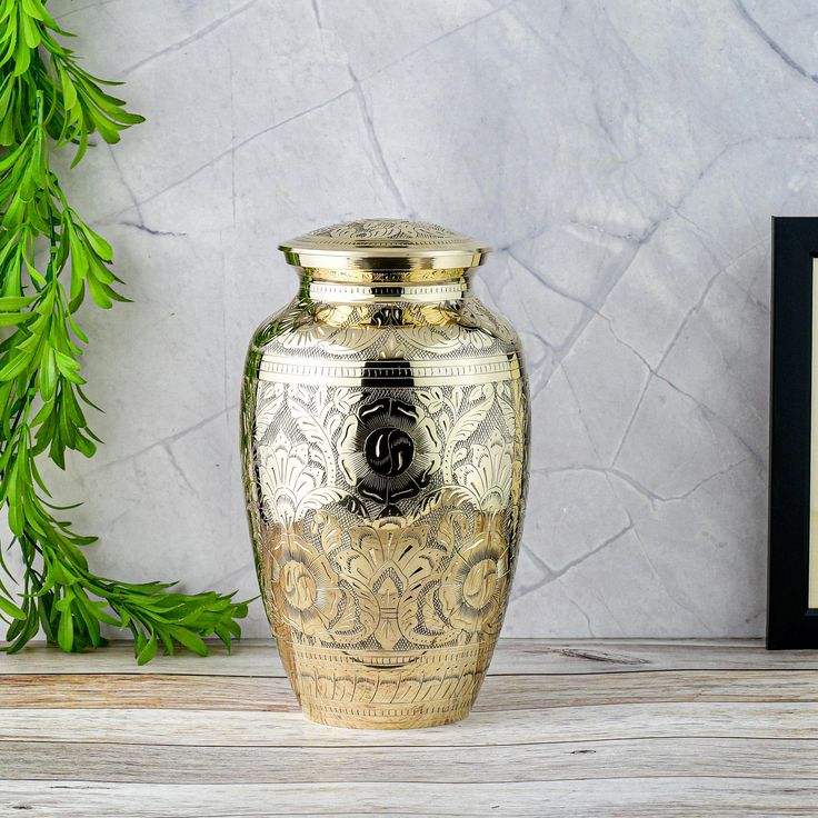 โกศทองเหลืองฝังด้วยมือขนาดใหญ่ที่มีลวดลายแบบดั้งเดิมและมีความทนทานแบบทันสมัยเพื่อการถวายบรรณาการสุดท้ายที่ยั่งยืน