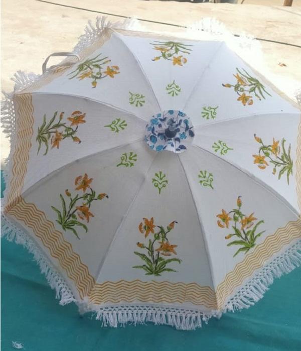 ร่มกันแดดลายพิมพ์มือขนาดใหญ่ งานฝีมือทำมือจากอินเดีย สำหรับตกแต่งภายนอก จัดงานแต่งงาน และใช้ในรีสอร์ทริมชายหาด