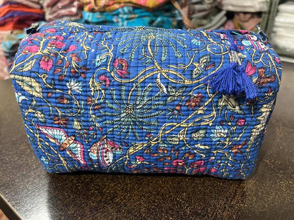 กระเป๋าใส่เครื่องสำอางผ้าฝ้ายทำมือขนาดใหญ่ ลายพิมพ์บล็อก พร้อมอุปกรณ์เสริมสำหรับการเดินทาง ของขวัญวันหยุด