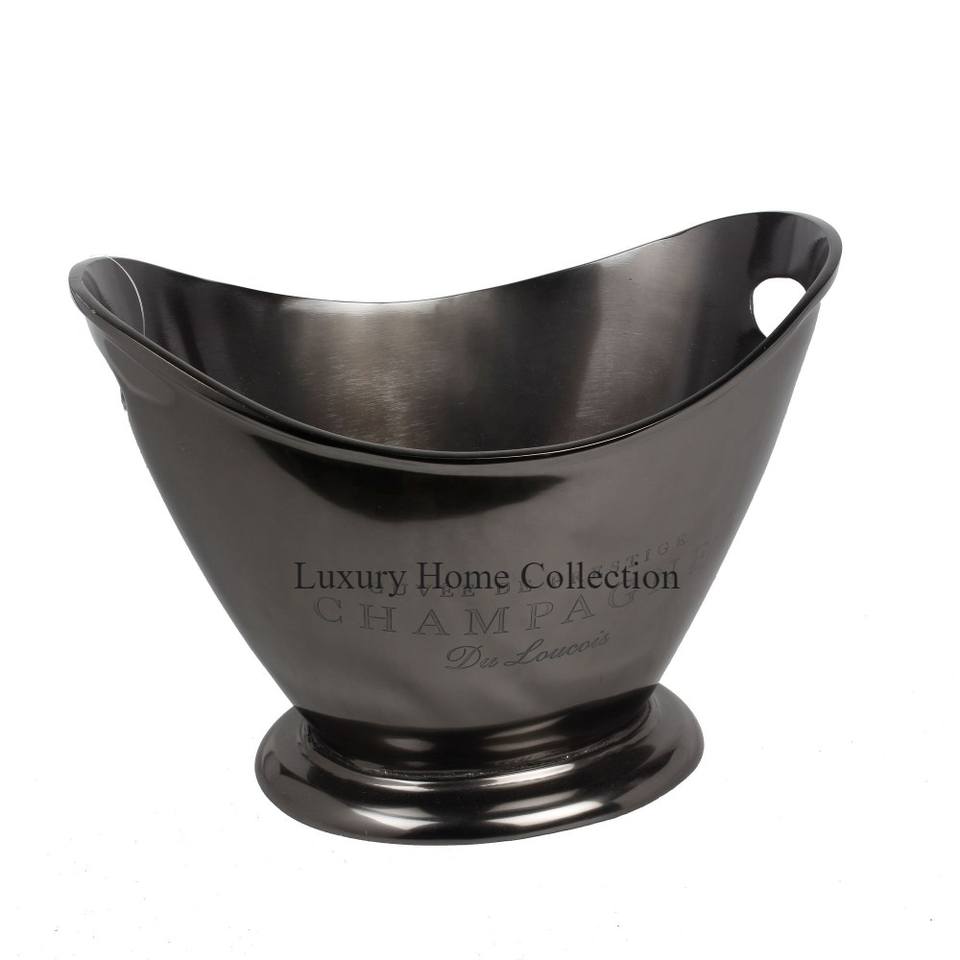 ถังแช่ไวน์โลหะทนทานรูปทรงหมวกขนาดใหญ่ตู้แช่น้ำแข็งและตู้แช่เย็นทำด้วยมือดีไซน์ที่น่าสนใจโต๊ะเคลือบผงสีดำ
