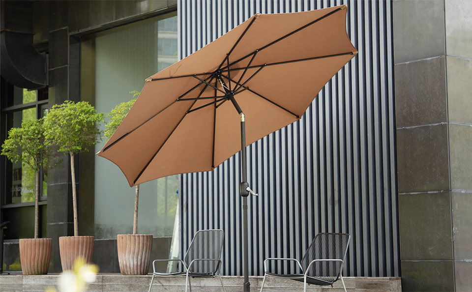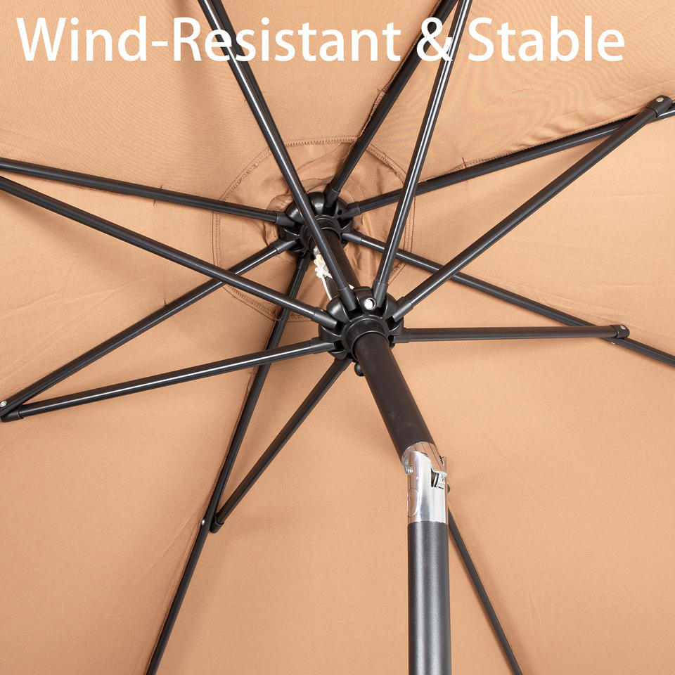 ร่มสนามขนาดใหญ่แบบตรง แข็งแรงทนทาน พร้อมมือหมุนปรับเอียง กันน้ำ กันรังสียูวี ทนลม โครงสร้างแปดซี่โครง สำหรับสวนกลางแจ้ง