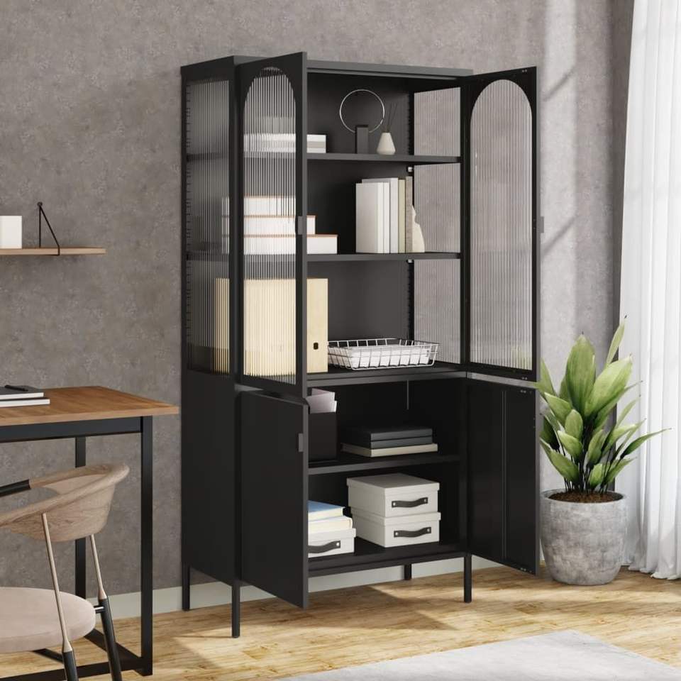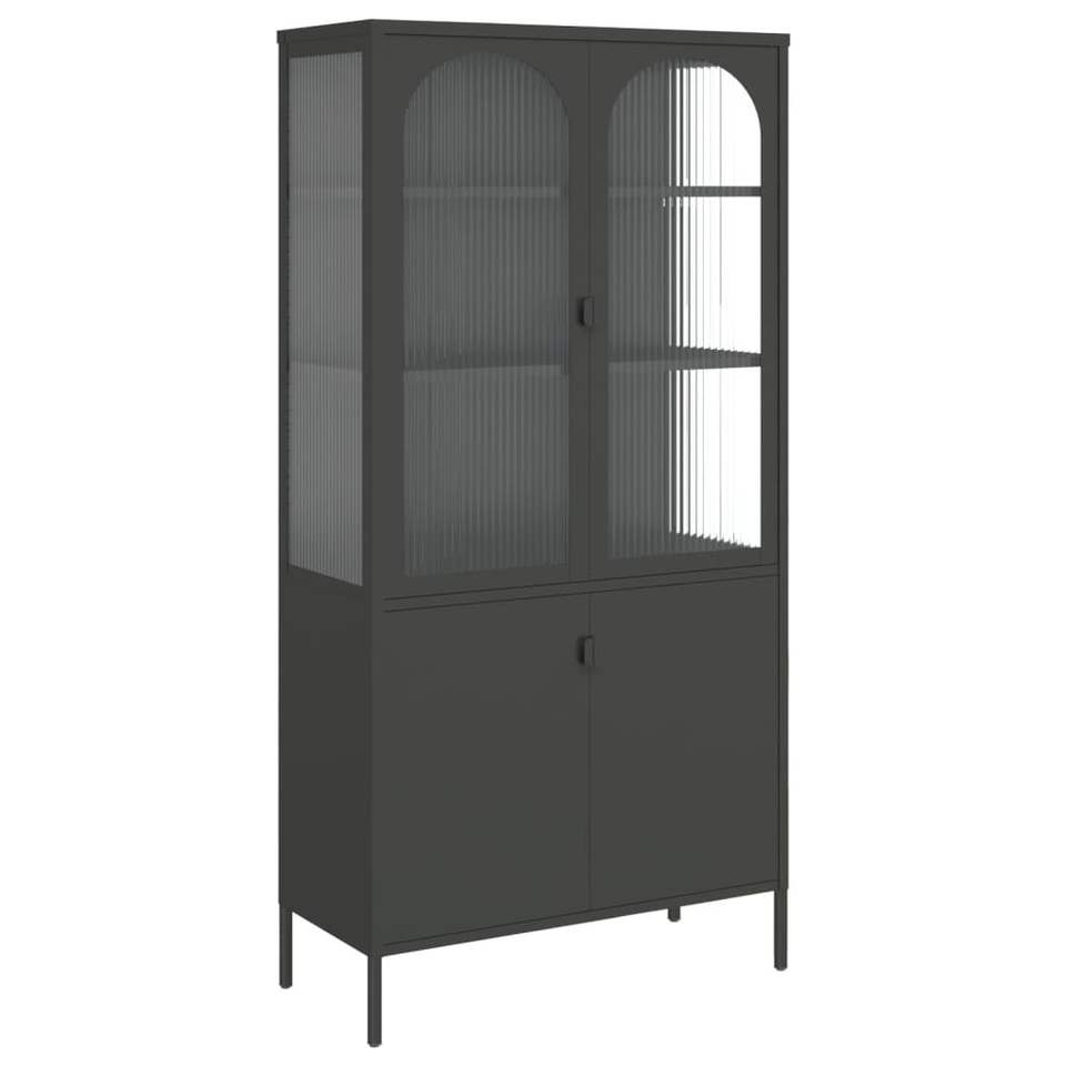 ตู้ไฮบอร์ดขนาดใหญ่ทำจากเหล็กเคลือบสีดำพร้อมกระจกแบบร่อง ตู้เก็บของห้องนั่งเล่นดีไซน์หรูหรา