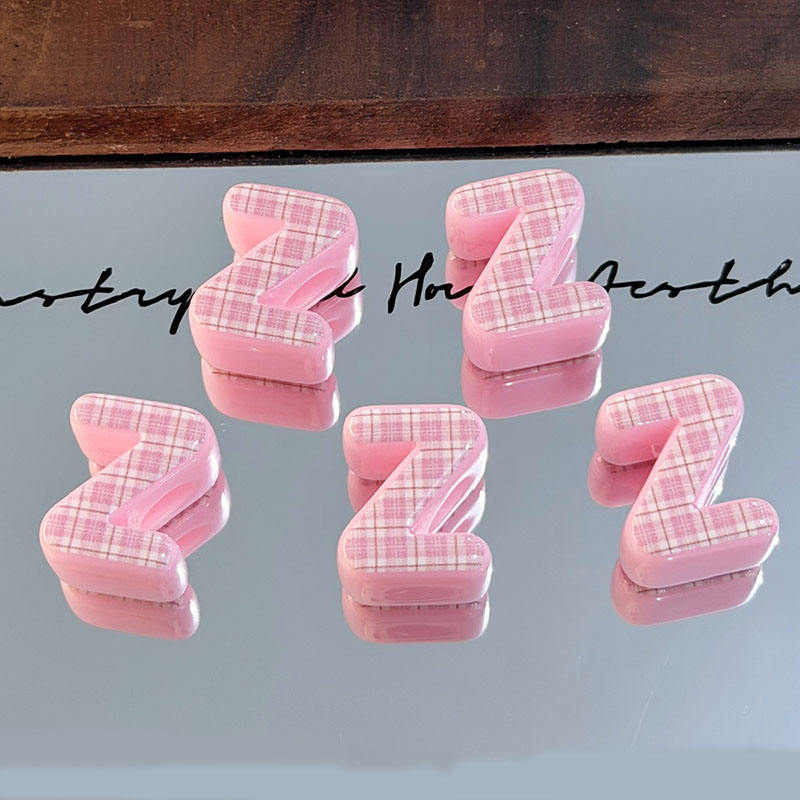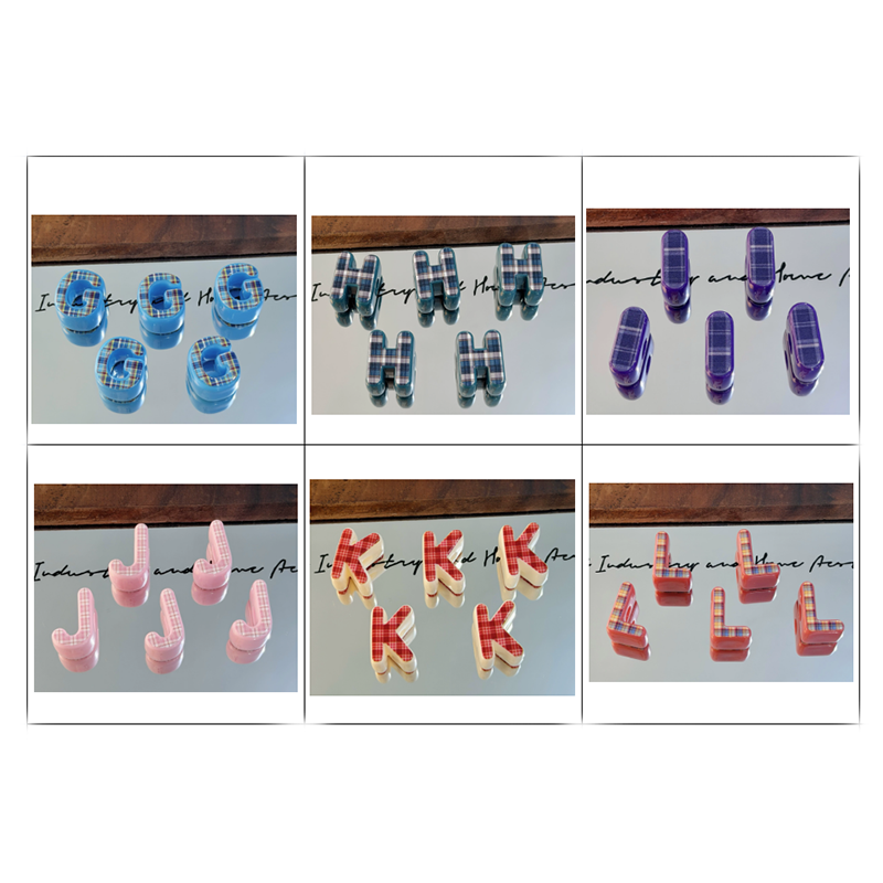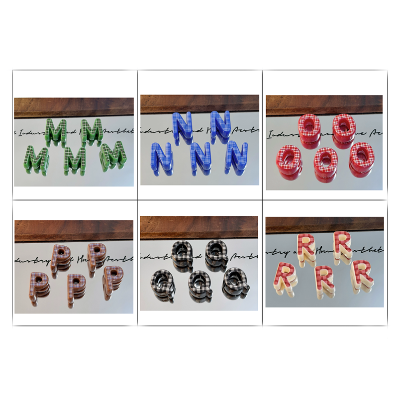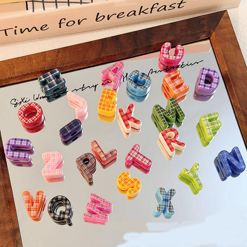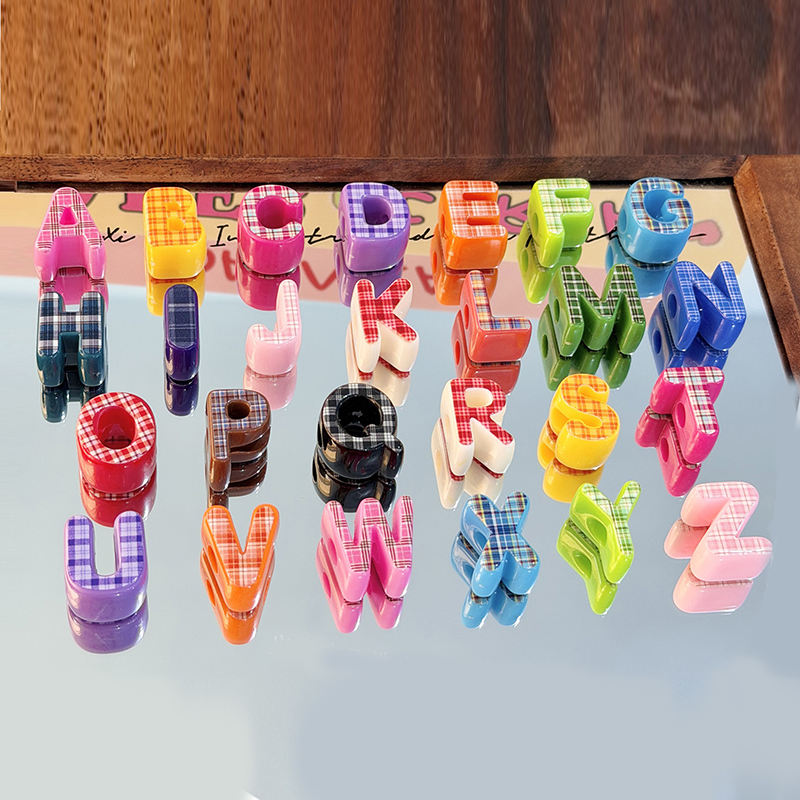 ลูกปัดอะคริลิคสีชมพูลายตารางขนาดใหญ่สำหรับพวงกุญแจ งานฝีมือ ลูกปัดตัวอักษรพยัญแบบกำหนดเอง