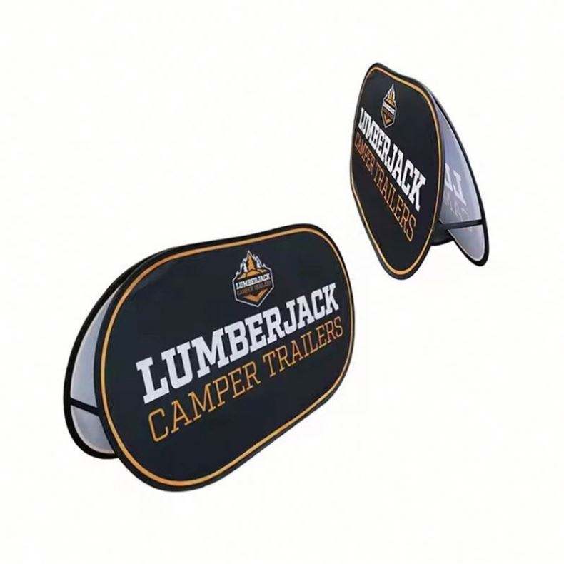 ป้ายโฆษณาแบบป๊อปอัพทรงเอขนาดใหญ่ แนวนอน พับเก็บได้ สำหรับใช้งานกลางแจ้ง พิมพ์สองด้าน สำหรับงานอีเว้นท์