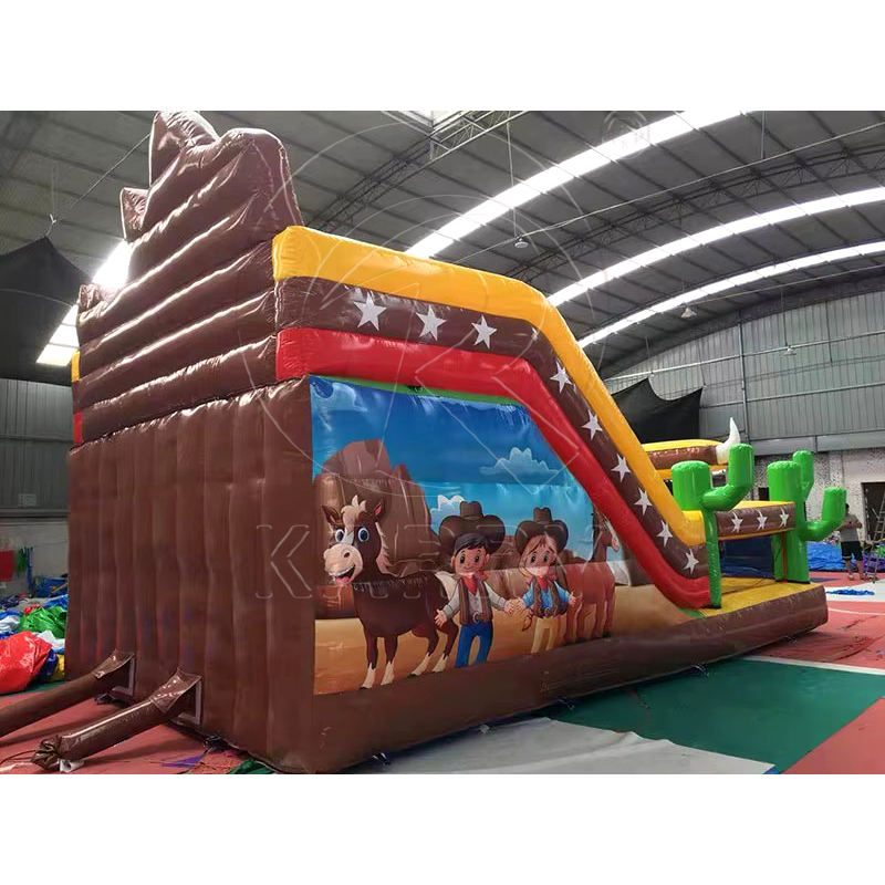 กระดานลื่นเป่าลม PVC ขนาดใหญ่รูปกระบองเพชรสองเลนแบบเป่าลมแห้งแบบคาวบอยสวนสาธารณะเด้งได้สไลด์เป่าลมขนาดใหญ่สนุกสำหรับเมือง