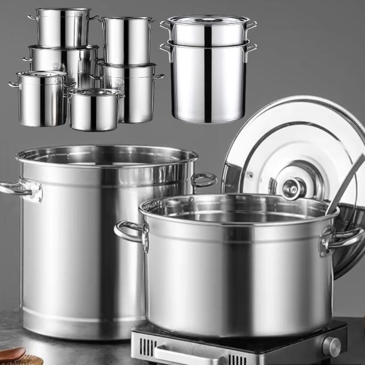 ชุดหม้อตุ๋นสแตนเลสหุ้มฉนวนขนาดใหญ่เครื่องใช้ในสต็อกซุปที่มีประสิทธิภาพสำหรับเตาแม่เหล็กไฟฟ้าและหม้อซุป