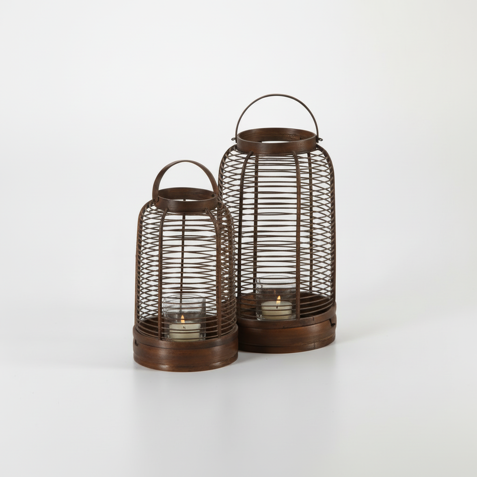โคมไฟลวดเหล็กขนาดใหญ่สำหรับตกแต่งระเบียงหน้าบ้านต้อนรับแขกด้วยแสงเทียนอันอบอุ่นและการเน้นความเป็นวินเทจ
