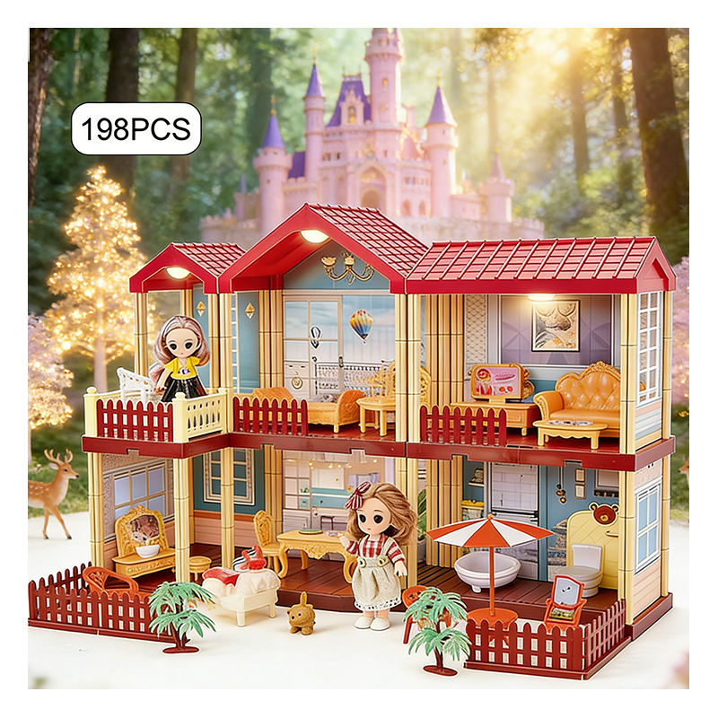 Large Kids Unisex Plastic Doll House Toy with Furniture Pool Balcony Slide Elevator Pretend Play Gift