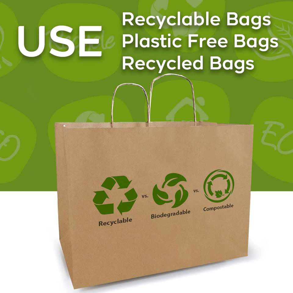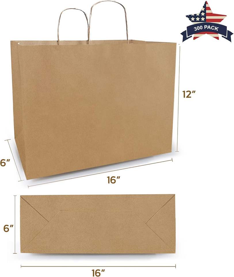 ถุงกระดาษคราฟท์ขนาดใหญ่ หูหิ้วแบบบิด ขนาด 16x6x12 นิ้ว จำนวน 300 ชิ้น สีน้ำตาล สำหรับบรรจุภัณฑ์ของขวัญสำหรับธุรกิจขนาดเล็ก