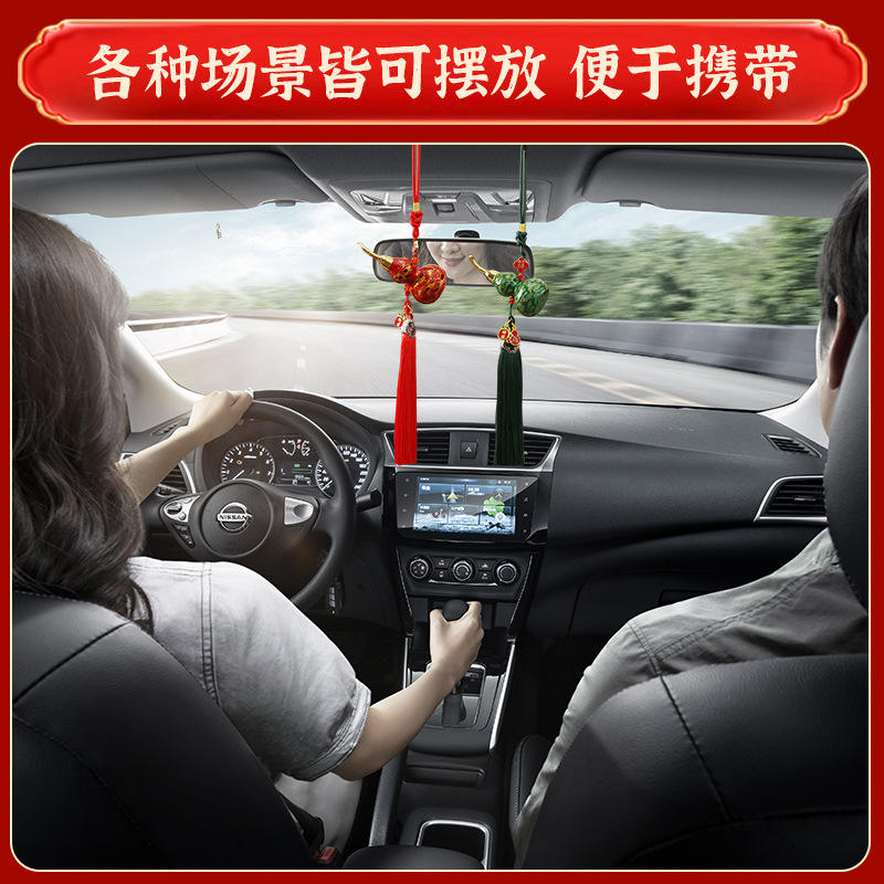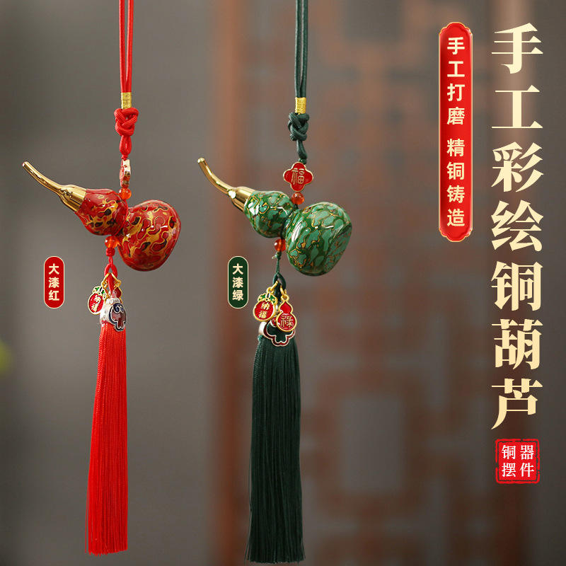 จี้ทองเหลืองแกะสลักลายโบราณ รูปน้ำเต้า ขนาดใหญ่ งานฝีมือเคลือบเงา พร้อมพู่ห้อย พกพาสะดวก ของตกแต่งรถยนต์ แบบโบราณ ตามหลักฮวงจุ้ย