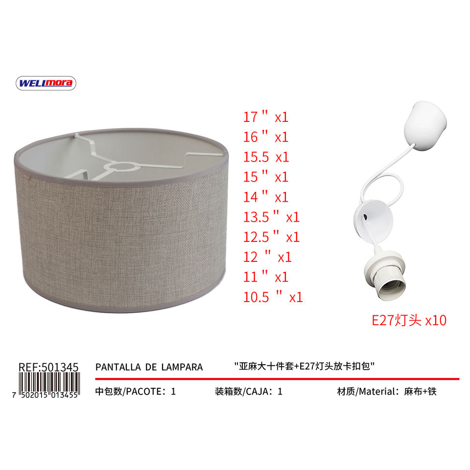 ชุดโคมไฟชิรง 10 ชิ้น ผ้าลินินสีเทาอ่อน E27 ทรงกระบอก สไตล์มินิมอล