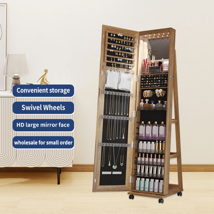 ตู้กระจกไม้หมุนได้ตั้งพื้นล็อคได้ขนาดใหญ่พร้อมล้อ